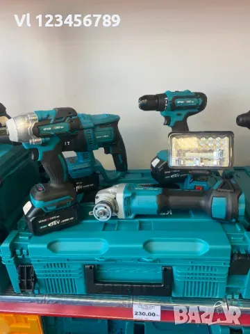 Комплект от перфоратор, винтоверт, гайковерт / импакт, ъглошлайф и лампа с USB 36V с 3 броя батерии 8Ah KraftRoyal
