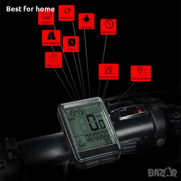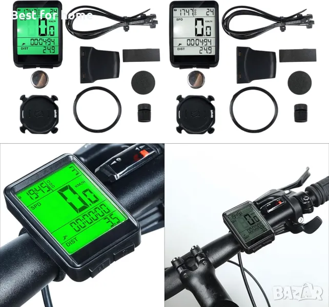 Безжичен велосипеден компютър с LCD подсветка Водоустойчив велосипеден скоростомер Одометър Колоезден компютър Лесна инсталация.