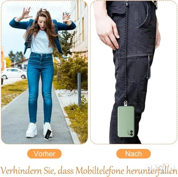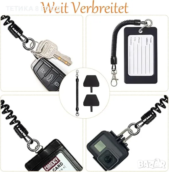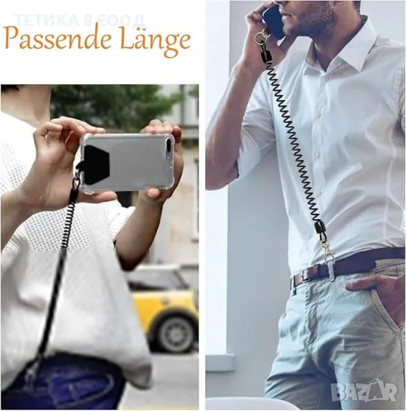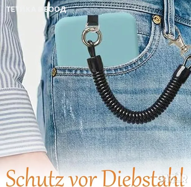Универсална верига за мобилен телефон с гъвкав спирален кабел, универсален ремък, устойчив на кражба и изпускане, за всички смартфони. Става и за ключове, чек карти, аксесоари и други.