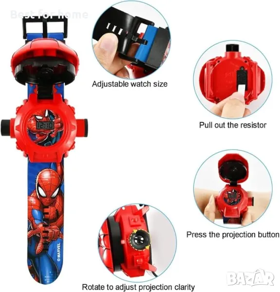 Часовник-проектор Спайдърмен с 24 фигурки на супергерои, електронен часовник Спайдърмен, деца, момче, прожекционни играчки Спайдърмен, цвят: червен, цвят: червен, супергерой