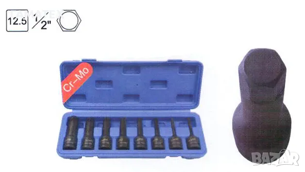 Ударни накрайници шестограми на вложка 1/2" - комплект 8 ч., 30008В