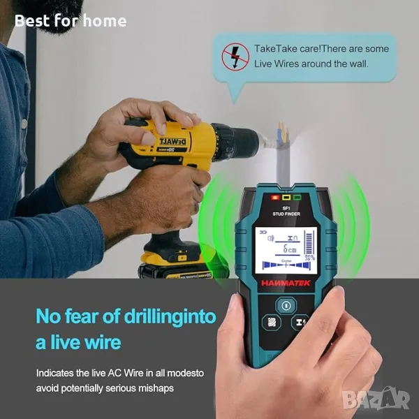 【Широка гама от приложения】: Търсачката на стенни шпилки бързо открива метални и дървени променливотокови кабели, скрити в стените, подовете и таваните на вашия дом, като ви помага да избегнете опасности при инсталиране на телевизори, шкафове и др.