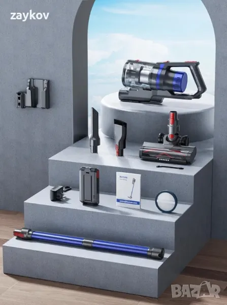 💙【55 минути автономност】Прахосмукачката е оборудвана със сменяема батерия 7*2200mAh и интелигентният защитен чип има множество системи за защита. Гарантирано цялостно почистване на цялата къща от 200 m² с максимално време за почистване от 55 минути. (15 минути на висока мощност, 55 минути на ниска мощност). Тази
