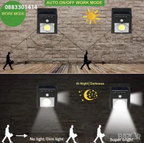 Сензорът за движение гарантира, че светлината се включва само при необходимост, което пести енергия и удължава живота на лампата.