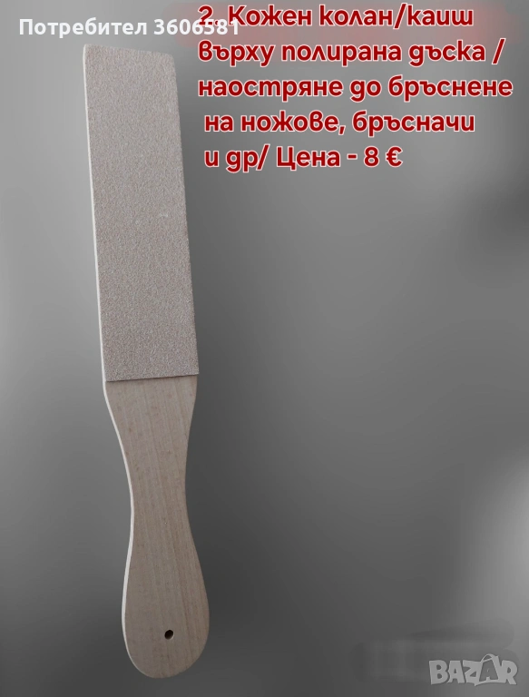 Номер 2. Колан/каиш на дъска(телешка кожа) за заточваване и полиране на ножове , ножици , бръсначи и др.