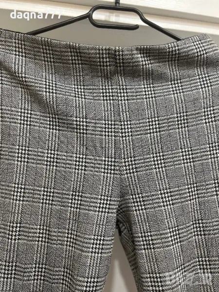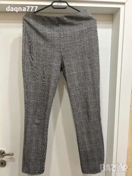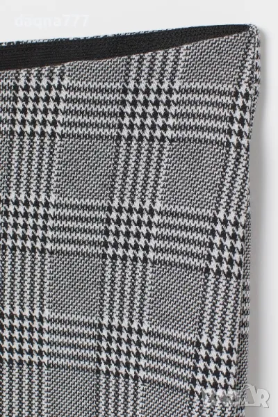 Панталон от еластично трико с висока талия,със скрит ластик и тесни крачоли, с дължина до глезена.