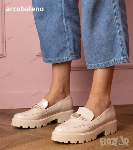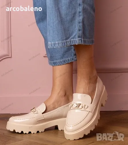 Дамски бежови лачени мокасини с циркониева пеперуда Sanita