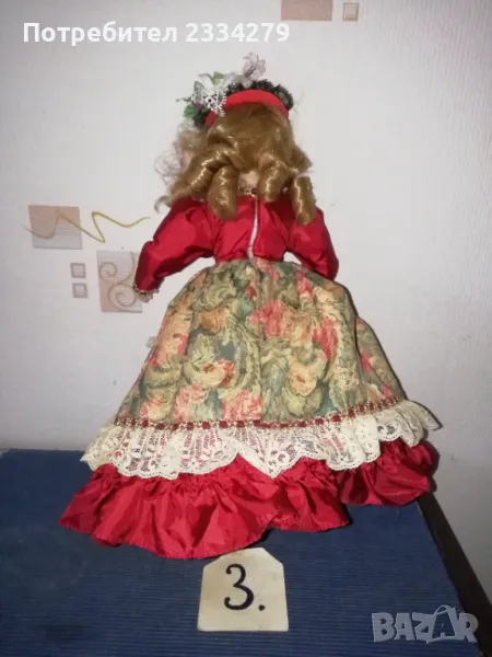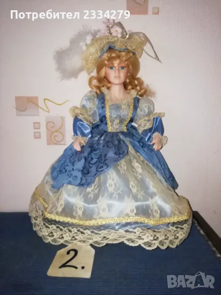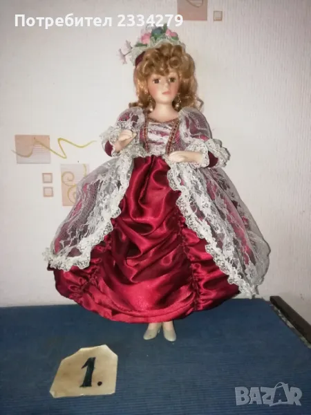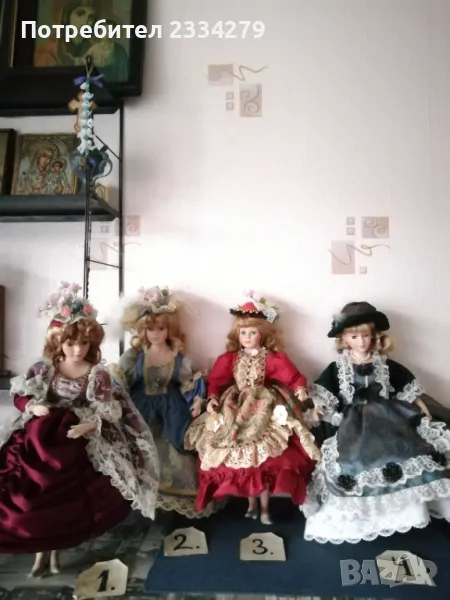 порцеланови кукли, красива авторска ръчна изработка на ,,Victorian Olls", всички са с шапки, обеци и цели порцеланови ръце, крака с обувки и глава с тяло. N:1 кукла с щемпъл име ,, MARY", цена 13€.; N:2 щемпъл на автор, номер и име ,,GRACIE`височина 42см.,цена 13€; N:3 кукла с име ,,КАТЕ" висока 42см.,цена 13€.; N:4 кукла с обеци, шапка и чадър, на врата с щемпъл на автор, номер и име ,, REBЕCCA", висока 42см., цена 13€.
