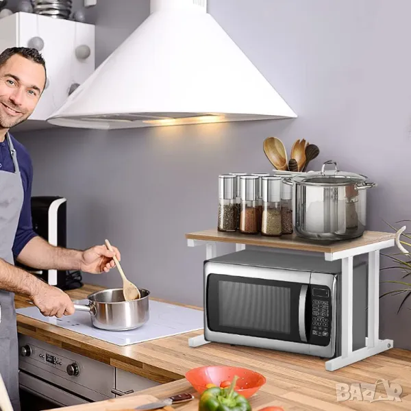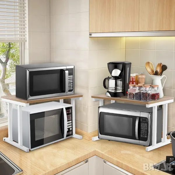 Допълнително място за съхранение: две нива, едно ниво за микровълнова фурна и друго за съхранение на кухненски предмети. Да направим кухнята ни чиста и подредена