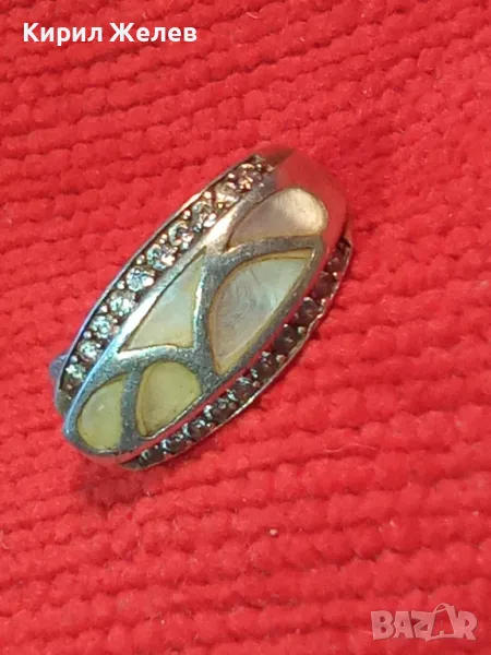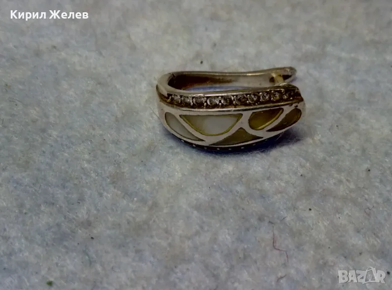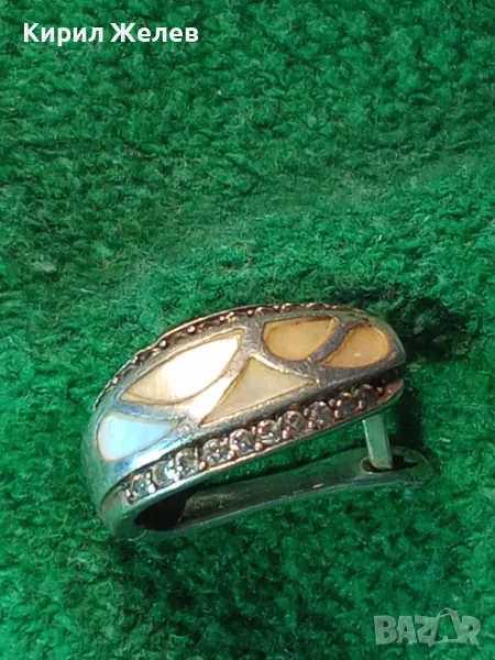 ВИНТИДЖ АРТ АНГЛИЙСКА СЕДЕФЕНА СРЕБЪРНА ОБЕЦА СРЕБРО 925 с ЦИРКОНИ МАЙСТОРСКА ЮВЕЛИРНА РАБОТА 49724