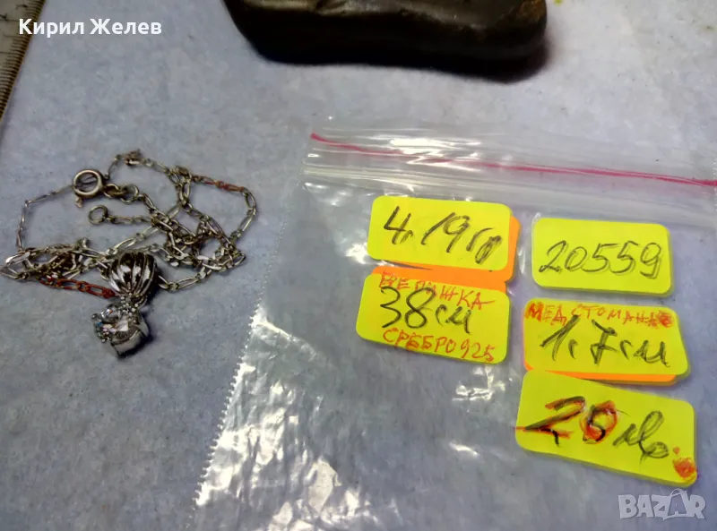 Пускам голяма СЕРИЯ от майсторска ръчна изработка старинни и нови СРЕБЪРНИ БИЖУТА - пръстени, обеци, медальони, гривни, ланци, колиета, брошки - някои са инкрустирани със скъпоценни или полускъпоценни камъни. Всичките са ТЕСТВАНИ ПРОФЕСИОНАЛНО върху лидийски камък с пробер - киселина за сребро, като особено по-старите, ръчно изработени и без маркировка които са, е заснето и резултата на камъка - яркочервеният цвят при натъркване и капване на киселината показва, че са от масивно СРЕБРО ВИСОКА ПРОБА. Има и накити от САЧАН /нископробна сребърна сплав, с която са работели старите майстори - куюмджии от периода на ВЪЗРАЖДАНЕТО и края на 19-ти век/, мед, бронз и благородна стомана с позлата или посребряване. Снимките ги ОНАГЛЕДЯВАТ! Имам НАД 27000 обяви в профила си - За ВСЕКИ по НЕЩО...! Изпращам по Еконт или Спиди с опция Преглед/Тест и отстъпка-транспорт.