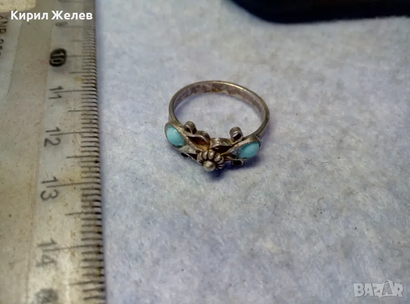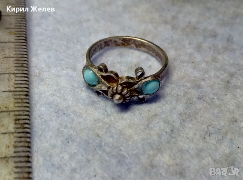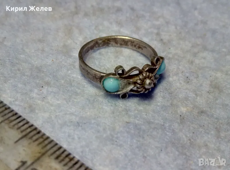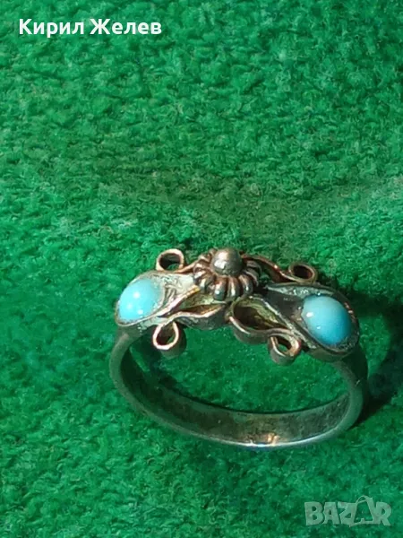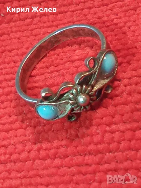 СТАР ТЮРКОАЗЕН МЕЛХИОРЕН ПРЪСТЕН МАЙСТОРСКА РЪЧНА ФИЛИГРАННА ИЗРАБОТКА РУСИЯ 44271