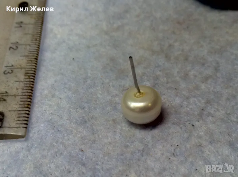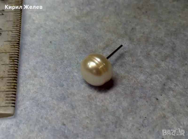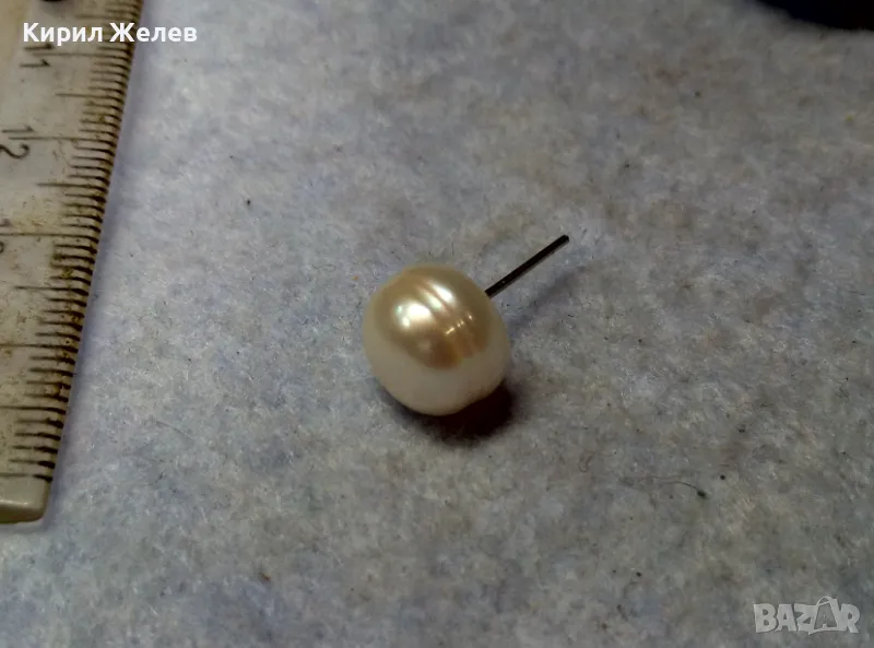 БЯЛА НАТУРАЛНА ПЕРЛА РЕТРО АРТ ОБЕЦА с ЩИФТ от БРОНЗ с ПОСРЕБРЯВАНЕ 48238