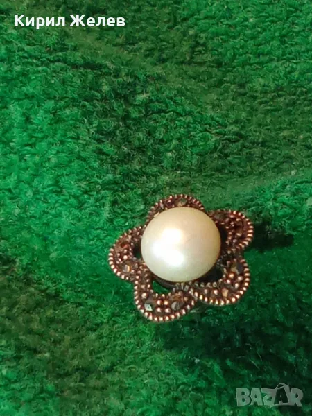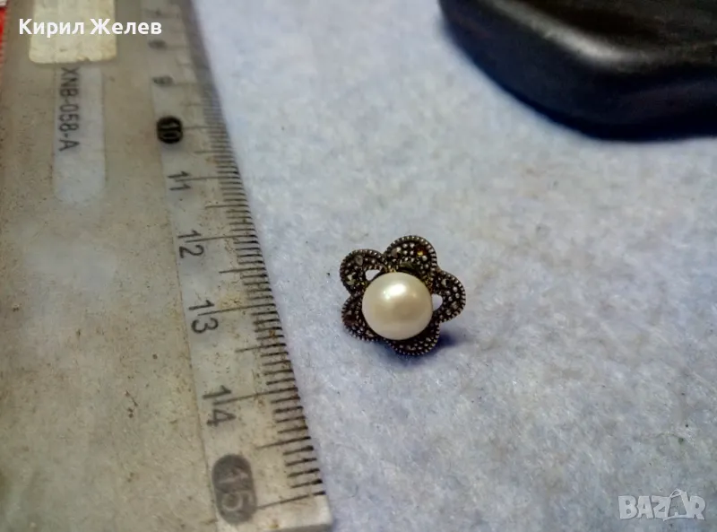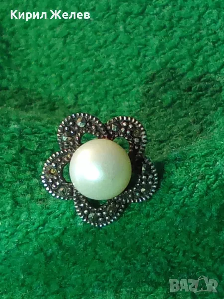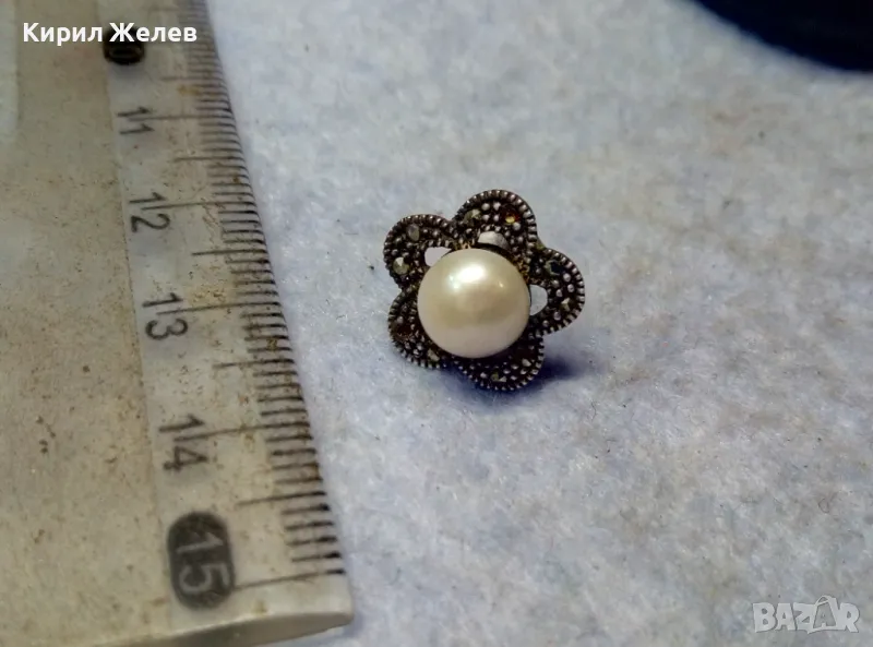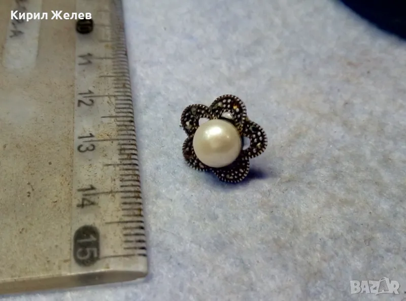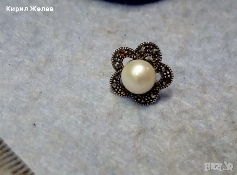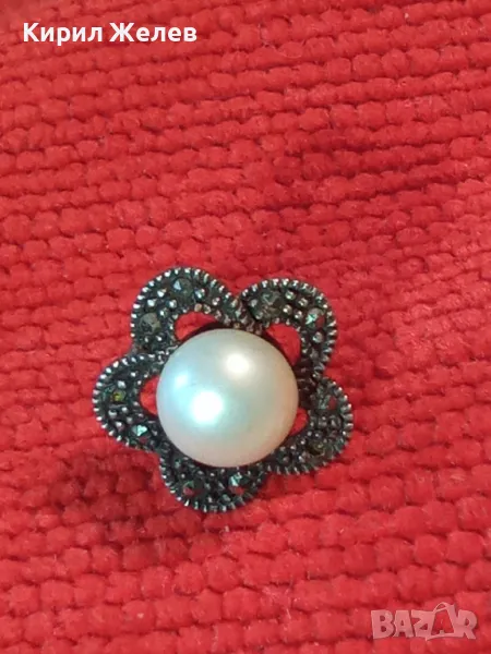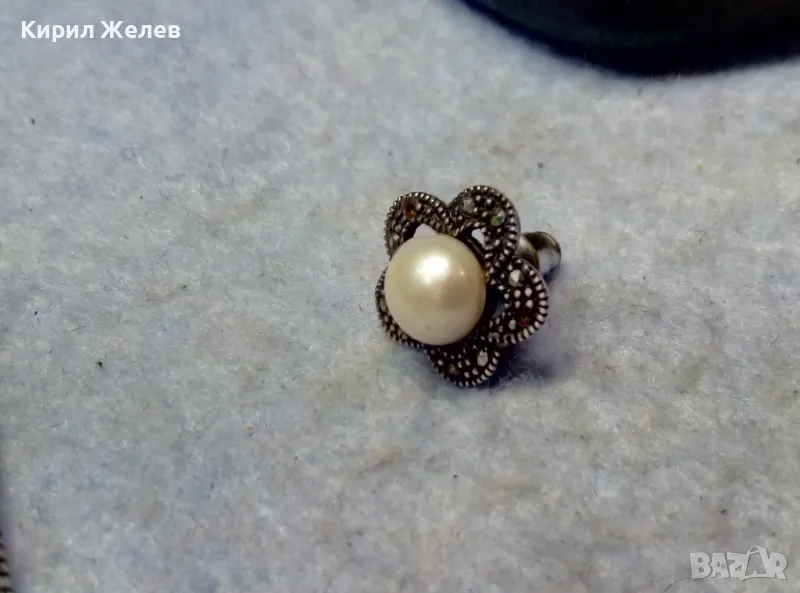 СКЪПОЦЕННА СРЕБЪРНА ПЕРЛЕНА ОБЕЦА СРЕБРО 925 с НАТУРАЛНА БЯЛА ПЕРЛА и ФАСЕТИРАНИ МАРКАЗИТИ 45514