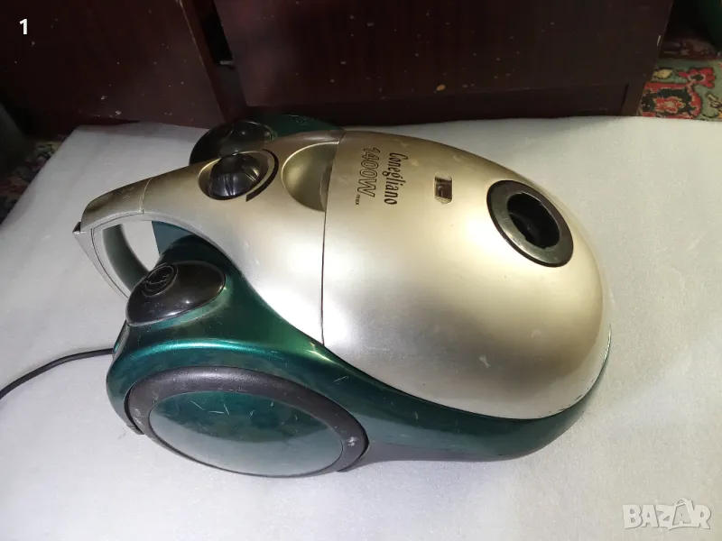 Прахосмукачка Conegliano,работеща,в добро състояние,без маркуч.Има и торбичка,но иска почистване.С регулатор на оборотите.Забележка-макарата заяжда и кабелът не може да се извади повече от 30 см.Бутонът за включване трудно се изключва-трябва да се натисне по-рязко.