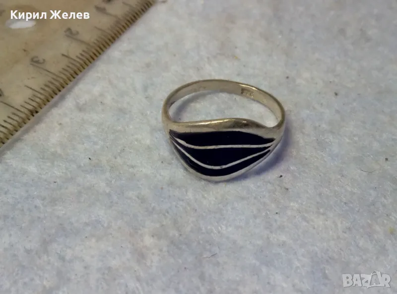 ЕЛЕГАНТЕН ЕМАЙЛИРАН СРЕБЪРЕН ВИНТИДЖ АРТ ПРЪСТЕН СРЕБРО 925 ПРОБА РЪЧНА РАБОТА 48262