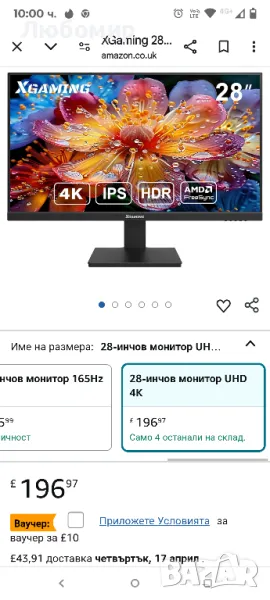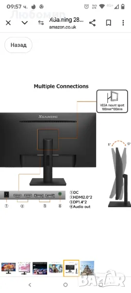 XGaming 28-инчов 4K монитор, 3840x2160 IPS панел, 60Hz, 4ms,100% sRGB, HDMI, DP, Freesync, HDR, Ниска синя светлина, VESA.Насладете се на 4 пъти повече детайли на екрана от FHD с ненадмината яснота и живи цветове на UHD (3840 x 2160) разделителна способност. IPS панел с 178° широк зрителен ъгъл, проектиран за картина с наистина първокласно качество. Монитор 4K с 1,07 милиарда цвята на дисплея, 100%sRGB цветово пространство, получавате точни цветове направо от кутия, осигуряваща най-доброто изживяване при гледане на видео, разширяване или игра на игра.UHD 4K монитор предоставя забележително остри и детайлни визуализации, което ги прави идеални за различни задачи като редактиране на видео и игри. Увеличеното им екранно пространство позволява ефективна многозадачност, повишавайки производителността. Високата функционалност се съчетава с превъзходен стил с тристранен ултратънък дизайн на рамката, който ви позволява да виждате повече с по-малко разсейване на този 28-инчов монитор.Технологията AMD Freesync предоставя игрово изживяване без разкъсване, осигурявайки плавни преходи и движения. Максималната честота на опресняване е само 60 Hz. HDR 10 осигурява по-широка гама от цветове и контраст, което прави всичко на екрана да изглежда по-реалистично и завладяващо. Когато HDR на монитора е включен, HDR на компютъра също трябва да бъде включен или и двете да изключат HDR, за цветовете на монитора да се показват правилно.