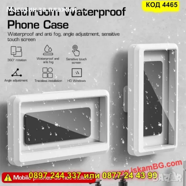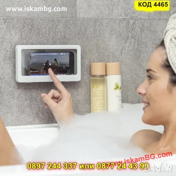 Защитете телефона си от вода и пара с тази водоустойчива стойка, идеална за баня, кухня или влажни помещения. Позволява гледане на видеа, слушане на музика и приемане на обаждания, без да излагате устройството на риск.