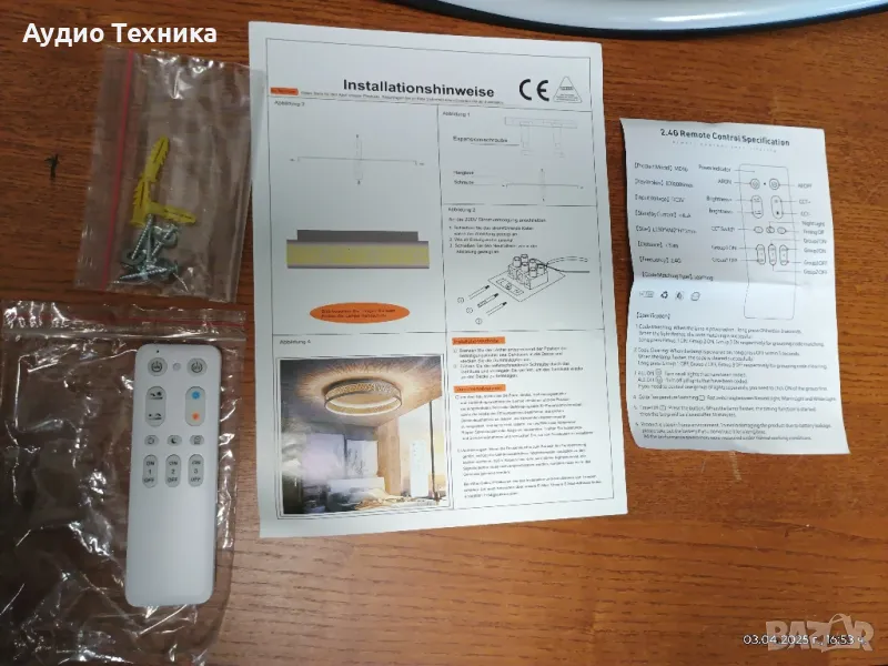 Промо цена 100лв. SKY ANGLE Модерна таванна LED лампа с дистанционно управление. 51см. КРАСОТА!