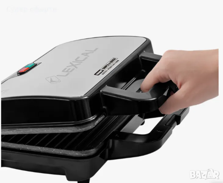 Тостер за сандвичи Lexical LSM-2520 е идеален за приготвяне на вкусни и хрупкави сандвичи с минимални усилия. С мощност от 1000 W и захранване 220-240V ~ 50/60 Hz, той осигурява бързо и ефективно приготвяне на храна. Тостерът разполага с две резени грил плоча с незалепващо гранитогресно покритие, което гарантира лесно освобождаване на сандвичите и улеснява почистването. Корпусът е изработен от неръждаема стомана, което осигурява дълготрайна издръжливост и модерен външен вид. Двете светлинни индикатори сигнализират кога уредът е готов за работа, а лесната за заключване и отключване система прави използването му още по-удобно. Тостерът е снабден с неплъзгащи се гумени крачета за стабилност и безопасност по време на употреба.