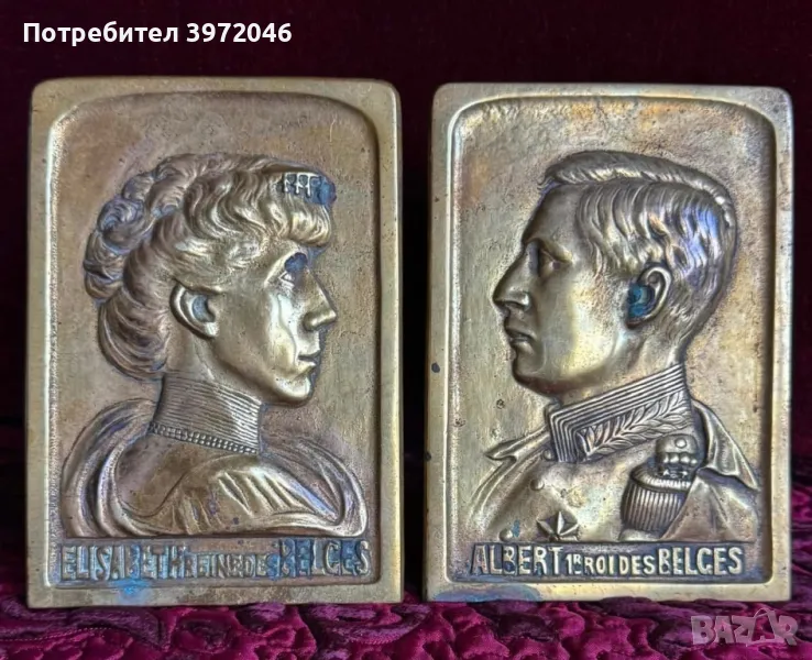 ⚜️Предлагам два редки и масивни антикварни бронзови плакета, изобразяващи белгийската кралска двойка – Крал Алберт I и Кралица Елизабет. Тези великолепни произведения на изкуството носят историческа стойност и са перфектно допълнение към всяка колекция или елегантен интериор.