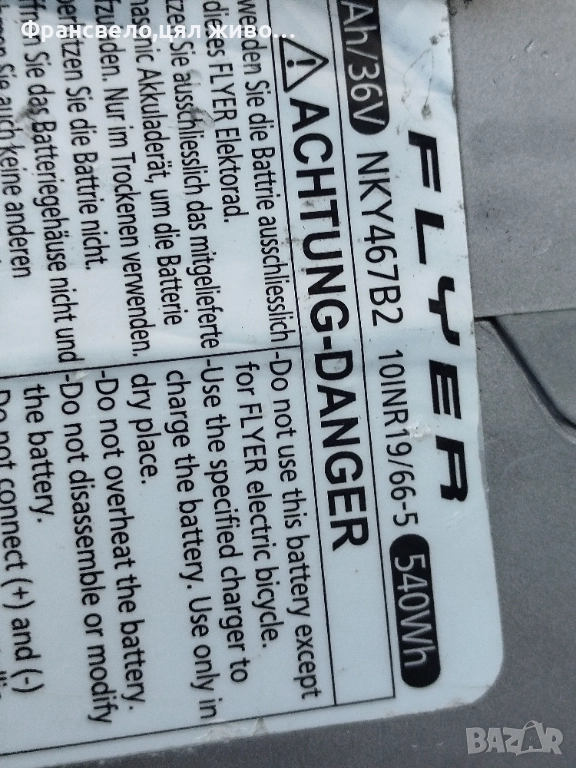 Батерия за електрически велосипед колело flyer, Panasonic → Обява 49760069