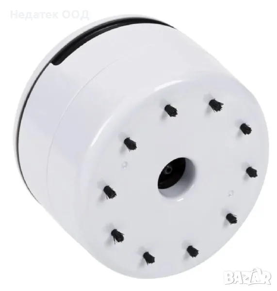 Препарат за почистване на повърхности на бюро. Абсорбира прах, остатъци от стъргало и гума или малки хартии. Има малки косъмчета по дъното и привлича прах и мъх. Идеален за повърхности на бюро, клавиатури и чекмеджета. Има бутон за включване/изключване. Работи с 2 батерии АА (не са включени).