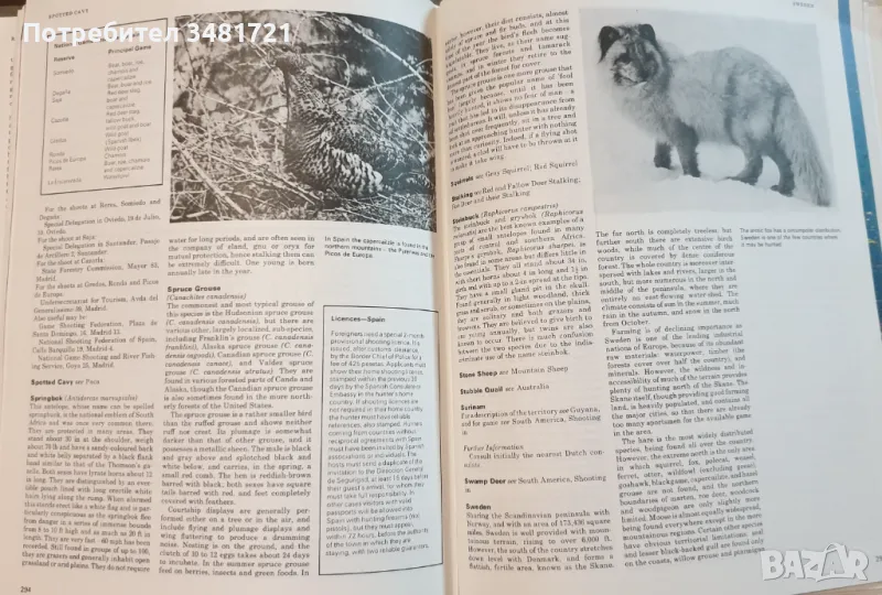 В текст, снимки, илюстрации и таблици, енциклопедията представя каква фауна е обект на лов в страни от целия свят. От гъски и