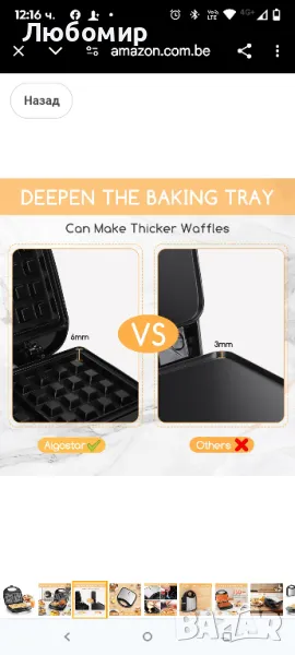 Машина за сладки вафли Aigostar с незалепващо покритие, машина за гофрети, по-дълбоки чинии, бързо нагряване, LED индикатор, студена дръжка, неплъзгащи се крачета, 750 W, черна, 0% без BPA