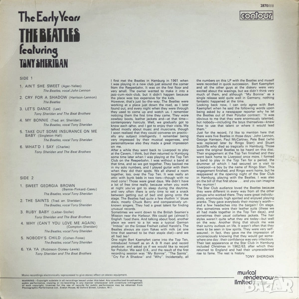 The Beatles Featuring Tony Sheridan – The Early Years, UK LP в отлично състояние VG++. Цена 15.00 евро.