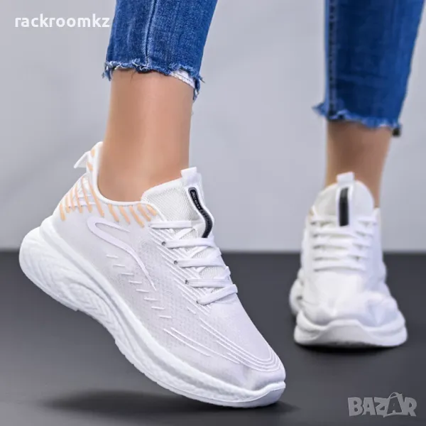 Добавете нотка елегантност към ежедневния си стил с тези дамски маратонки White Elegance! Създадени за модерната жена, този лек модел разполага с дишаща мрежеста материя, която поддържа краката ви свежи през целия ден. Омекотената подметка от EVA пяна осигурява комфорт и подкрепа при всяка стъпка, а изчистеният бял дизайн с фини прасковени акценти добавя универсалност към всяка визия – от спортни до ежедневни тоалети. Налични в размери от 36 до 41, тези маратонки са идеални за разходки, леки тренировки или дълги дни на крак.