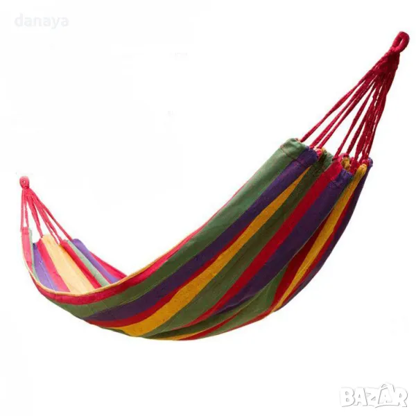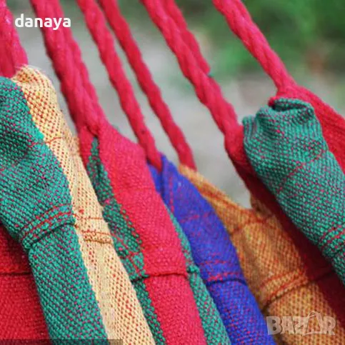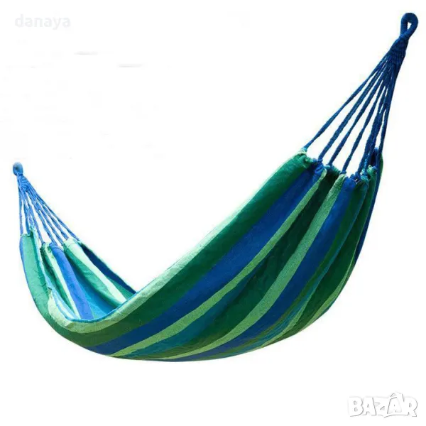 Хамак от плат за къмпинг или градина. Къмпинг хамаци изработени от здрав памучен плат хасе. Хасето е материя, която е мека и приятна на допир. Този градински хамак осигурява пълен комфорт по време на почивка сред природата. Поставянето на хамака е много лесно – закача се между две фиксирани точки. Пълна дължина 240см. Хамаците се предлагат в две разцветки на плата – син и червен.