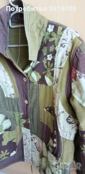 Дамско яке , ръчна изработка, единствен екземпляр, ексклузивно! Размер 46-48. Естествен канадски памук. В отлично състояние, ръчна изработка, двустранно - може да се носи като две якета - различни цветове. Внос от Канада, много леко и с високо качество.