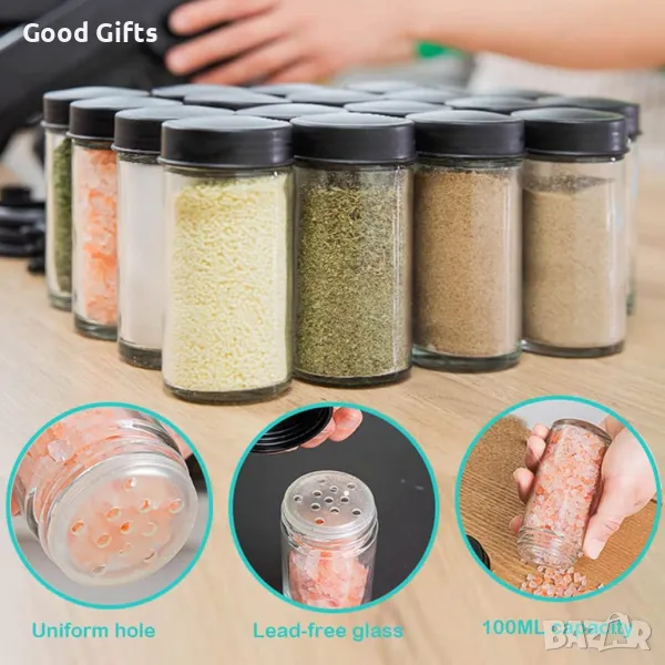 Въртящият органайзер е снабден с 18 стъклени бурканчета, които предоставят достатъчно място за съхранение на разнообразни подправки, като сол, черен пипер, кимион, чили и още много други. Всяко бурканче е изработено от висококачествено стъкло, което запазва свежестта и качеството на подправките.