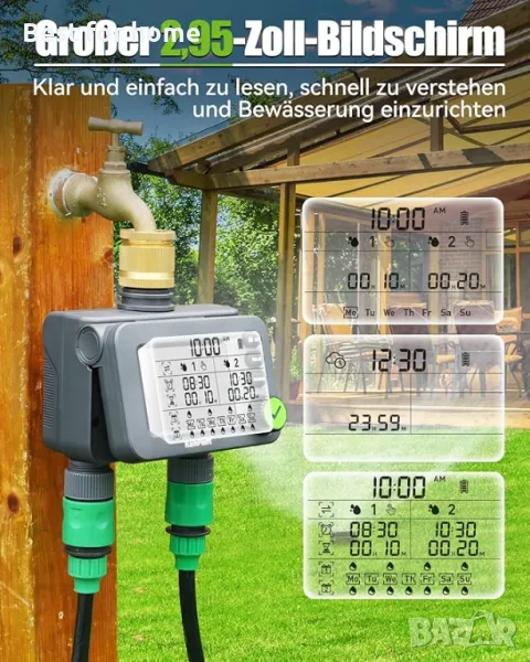 【2024 Нов таймер за маркуч】Въртящ се интерфейс на 360°, лесен за инсталиране. Вграденият метален филтър издържа 35 kg водно налягане. Мембрана на клапана от 2 поколение със самопочистваща се технология за до 600 000 цикъла. IP54 високоустойчива пластмаса и тежка конструкция осигуряват издръжливост. Мембраната на клапана от 2 поколение издържа 35 kg водно налягане. Диафрагмата на клапана от 2 поколение издържа 600 000 цикъла. Уплътнителен пръстен на капака на батерията, за да се избегне изтичане на вода.