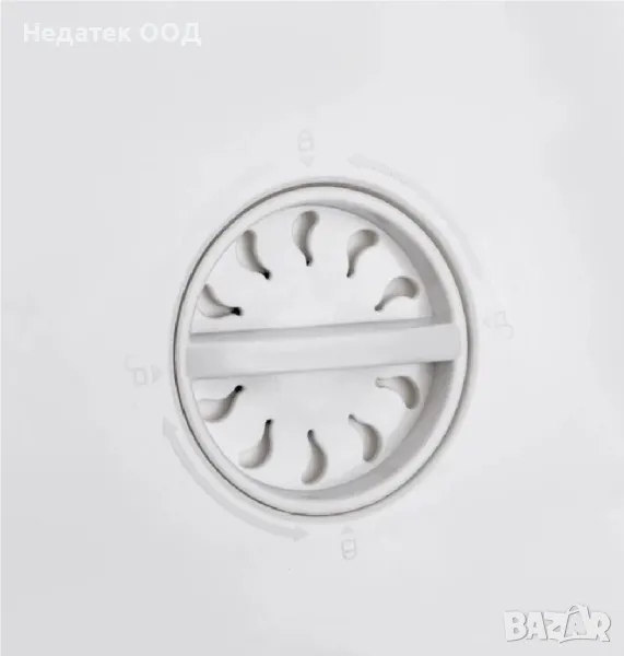 Бял сив пластмасов леген с дръжки, сгъваем. Натиснете в центъра, за да отворите и след употреба натиснете краищата, за да затворите. В долната си част има капачка на винт за лесно и бързо изпразване на съдържанието. В затворено състояние се съхранява лесно.