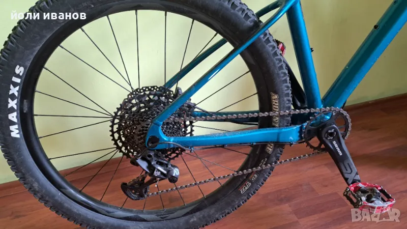 Велосипед за катерене,12 скорости,52 зъба отзад най големия венец,31 зъба на средното,седалката се командва от кормилото,амортисьорна вилка 130 мм,27,5 цола капли безкамерни,гуми MAXXIS,педали SHIMANO DX метални изцяло заключващи се,рамка М размер,кормило 78 см,дерайльор SRAM,всички жила са в рамката,седалка ROMERO,велосипеда е в отлично техническо състояние,няма нужда от пипане