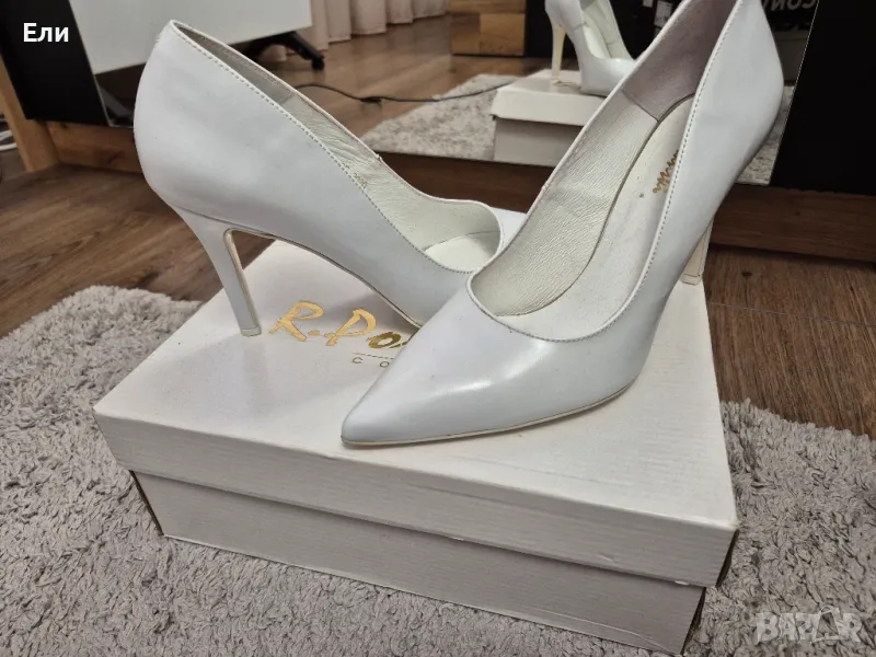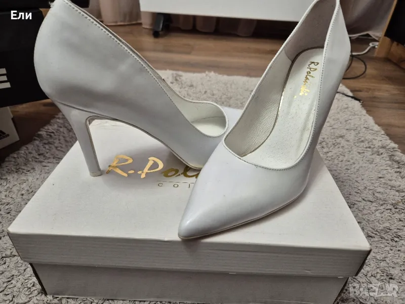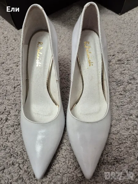 Бели елегантни обувки!Обувките са слагани само за снимки! Нови са ,не са носени! Размера е 41(26,5см.)Тока е 10см.
