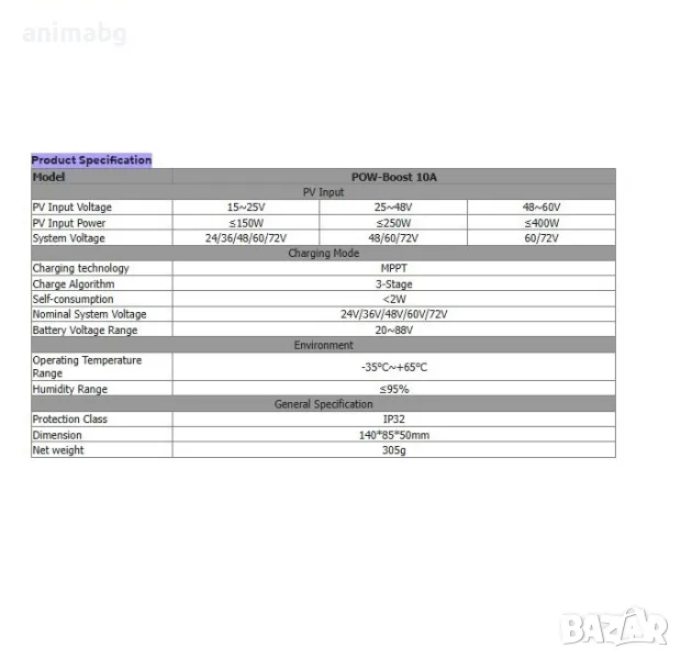 ANIMABG Соларен контролер за зареждане, PowMr 10A MPPT Boost-тип