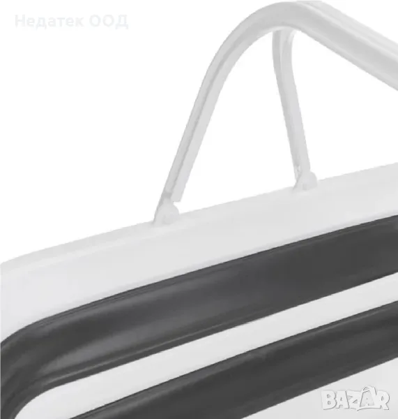 Бял сив пластмасов леген със сгъваеми дръжки, сгъваем. Натиснете в центъра, за да отворите и след употреба натиснете краищата, за да затворите. Можете да го отворите наполовина и да използвате междинния размер. В затворено състояние се съхранява лесно.