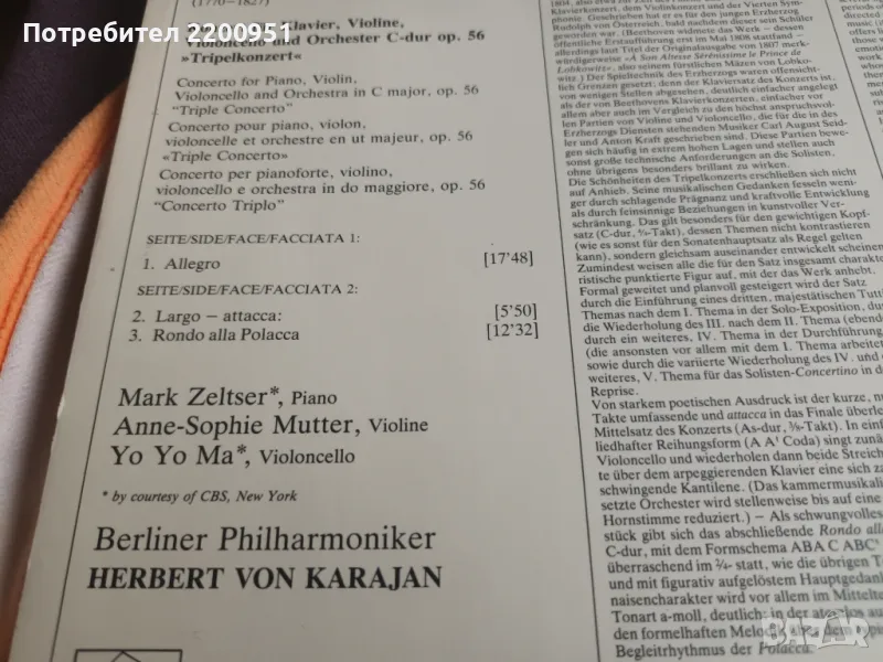 BEETHOVEN-TRIPLEKONZERT → Обява 49763145