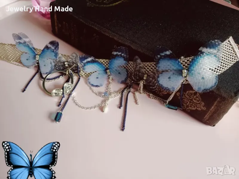 🦋🩵 Пеперуден свят 🦋🩵Нежен и ефирен чокър.Синият цвят на пеперудите носи спокойствие и изящество, а самият чокър съчетава модерност и романтика.