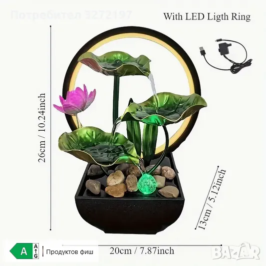 удобна за потребителя настройка, този фонтан с течаща вода от лотосови