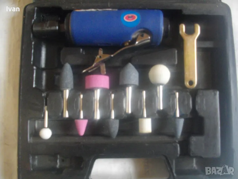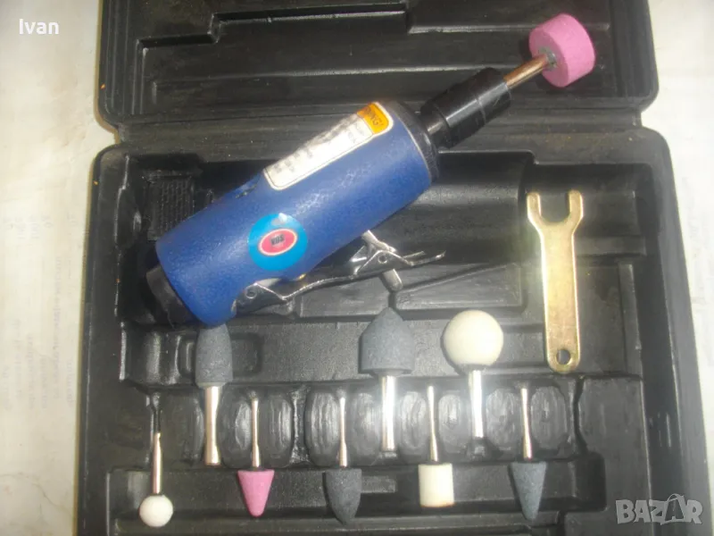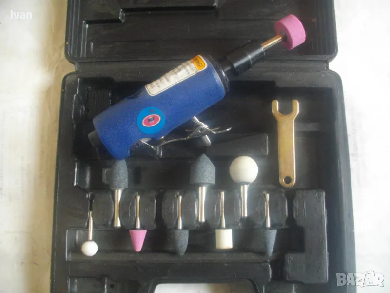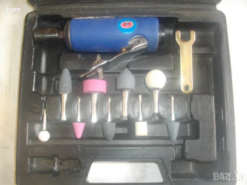 НОВ 12 ЧАСТИ ПЪЛЕН КОМПЛЕКТ БЕЛГИЙСКИ ПНЕВМАТИЧЕН ПРАВ ШЛАЙФ ЦАНГА ф6мм С АКСЕСОАРИ VOS
