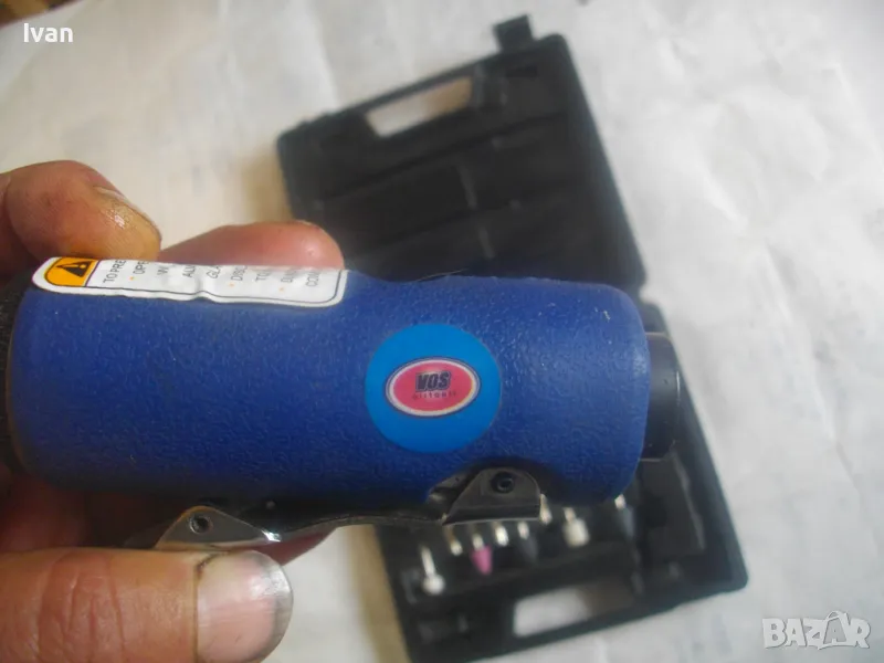 Съвсем нов, неупотребяван и неизполван пневматичен /работещ на компресор със сгъстен въздух/ прав шлайф с марки ергономични размери и олекотен дизайн, професионелн белгийски модел на VOS.