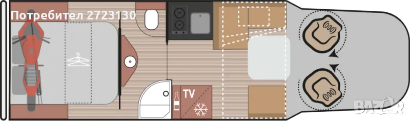 Места за спане: Спално помещение, което се отделя чрез врати от банята и от основната част на кемпера.