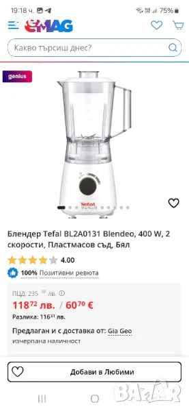 блендер TEFAL, снимка 1 - Блендери - 49765387 блендер TEFAL, снимка 2 - Блендери - 49765387 блендер TEFAL, снимка 3 - Блендери - 49765387 1/3