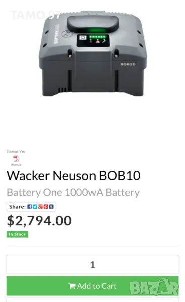 Продавам мощна литиево-йонна батерия на Wacker Neuson 50.4V 20Ah с индикатор като нова все още, използване много-малко пъти също така работи и държи перфектен заряд. Оригинално полско произвоство от 2024г. внос от Франция. Батерия е за акумулаторни машини като