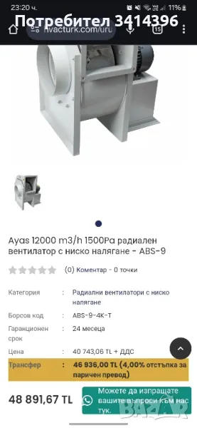 центробежен вентилатор → Обява 49767385