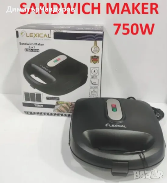 Грил - Тостер LEXICAL LSM-2530, 3В1 е мултифункционално устройство, което съчетава възможностите на грил, вафлени плочи и сандвич тостер. С мощност от 750 W и работа при напрежение 220-240 V~50/60 Hz, той е идеален за бързо и равномерно приготвяне на храна.